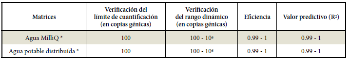Se emplearon 3 diluciones seriadas al medio ooquistes comerciales de Cryptosporidium parvum para la adición a 20 L de agua de distribución a ser filtrada por vacío en membranas compuestas de ésteres de celulosa con una porosidad de 1,2 μM y de un diámetro de 47 mM (Millipore). Completada la filtración, las membranas fueron transferidas a tubos tipo Falcon de 50 mL con 2 mL de buffer de lisis y resuspendiendo los ooquistes por vortex y pipeteo. Una vez eluídos, el ADN correspondiente fue extraído y purificado de acuerdo a lo indicado anteriormente para llevar adelante reacciones de PCR de tiempo real.