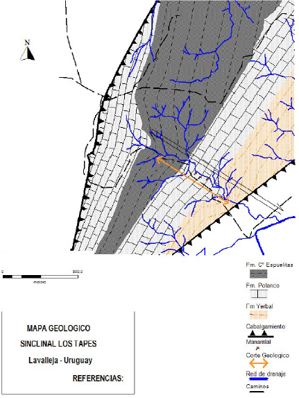 Mapa geológico de la Región II (Sinclinal Tapes Grande), Lavalleja.