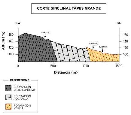 Corte geológico NW-SE (Sinclinal Tapes Grande), Lavalleja.