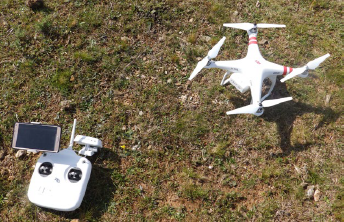 Se realizó el relevamiento geológico y geomorfológico de las áreas de estudio, atendiendo especialmente la geología estructural (pliegues, fallas, diaclasado) y las geoformas kársticas. Se sobrevoló a 150 m de altura las regiones estudiadas con un drone (DJI Phantom II Vision +) (Figura 2) y se obtuvieron ortofotos con solapamiento de un 60 %. Fueron relevadas las perforaciones en el área y se determinó su profundidad, nivel piezométricos, caudal y posición en el terreno. Se emplearon datos geoeléctricos S.E.V. (sondeos eléctricos verticales), proporcionados por la empresa consultora GeoAmbiente, que permitieron interpretar información obtenida en campo.