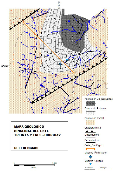 a) Estudiar la geología en detalle de la Formación Polanco en los departamentos de Treinta y Tres y Lavalleja mediante fotointerpretación, trabajo de campo y relevamiento fotográfico de un drone.