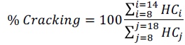 Luego, dado que la existencia en el producto de hidrocarburos inferiores a C15 indica la ocurrencia de fenómenos de cracking, el porcentaje de cracking se puede estimar por el porcentaje de estos hidrocarburos en el total de este grupo de compuestos: