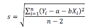 Para los n pares de datos (X, Y), donde X es el número consecutivo de indicación del espirómetro e Y el valor que toma dicha indicación, se estimó un modelo de regresión lineal que los vincula, donde la estimación de la pendiente y del intercepto se realizaron según las Ecuaciónes 5 y 6, respectivamente. La desviación estándar de la pendiente se calculó según las Ecuaciones 7 y 8.