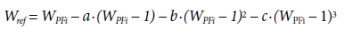 Donde el WPF. representa el coeficiente Wt90 observado en la realización de cada celda de punto fijo (el LATU posee puntos fijos de In, Ga, Sn, Zn, Al y Hg), en tanto a, b y c son coeficientes calculados del polinomio.