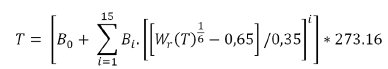A partir de estos valores de Wref es posible obtener el valor de temperatura a la que está sometido el patrón por medio de dos ecuaciones de referencia, definidas respectivamente para los intervalos de 14 K a 273 K y de 273 K a 1235 K de acuerdo a las Ecuaciones 4 y 5: