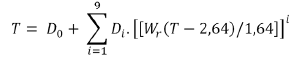 Donde T es la temperatura en K, en tanto los valores de B y D son constantes definidas.