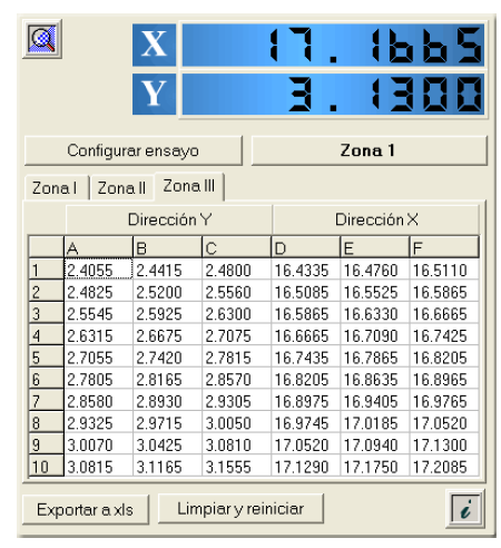 Esta aplicación de interfaz simple consta de un visor digital en la ventana que reproduce los valores tomados en el detector de perfiles. Luego de iniciado el ensayo, el operador recorre la secuencia de puntos, que son selectivamente tomados por la aplicación, descartando zonas de contraste no previstas. En todo momento, el operador puede pulsar un botón en la aplicación donde se le indica el próximo punto a medir, así como el detalle gráfico de la posición del punto en la secuencia de trabajo. En este caso se alcanzaron también todos los objetivos planteados.