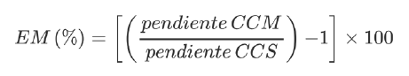 CCM: curva de calibración en matriz; CCS: curva de calibración en solvente.