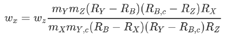 donde wX es la fracción de masa de creatinina en la muestra de suero humano, wZ es la fracción de masa de creatinina en la solución calibrante, mY es la masa de solución de creatinina-d3 adicionada a la mezcla de muestra (BXY), mY,c es la masa de solución de creatinina-d3 adicionada a la mezcla de calibración (BZY), mZ es la masa de solución de calibrante adicionada a la mezcla de calibración (BZY), mX es la masa de suero tomada, R son los ratios de los iones 329 m/z sobre 332 m/z en BZY (RB), en BXY (RB,c), en la solución calibrante (RX y RZ) y la solución del isótopo (RY).