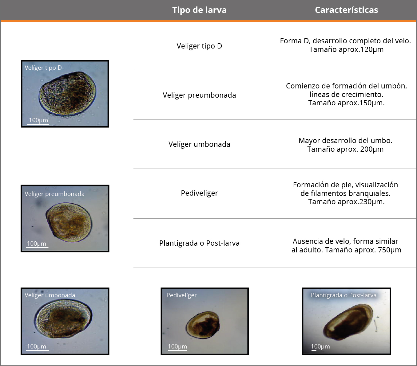 Tabla 1. Características de los estadios larvales valvados analizados (modificado de Ezcurra de Drago, et al., 2006).