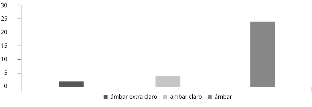 Figura 2. Número de muestras por categoría de color en la Escala Pfund.