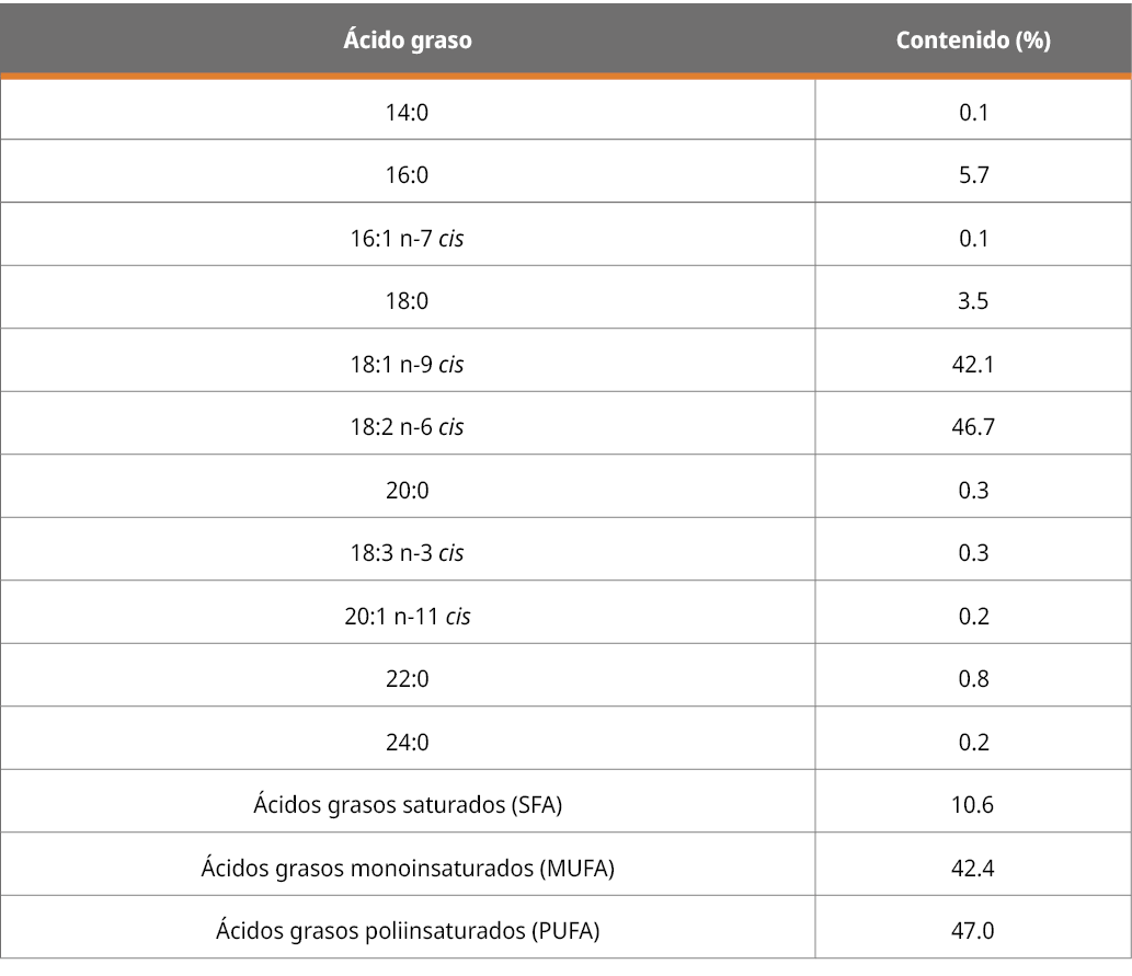 Tabla 1. Composición en ácidos grasos del aceite de girasol