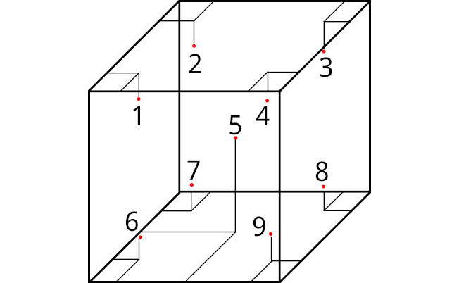 Figura 1. Medición en 9 puntos. Ubicación de los sensores para caracterizar un medio isotermo (EURAMET, 2017).
