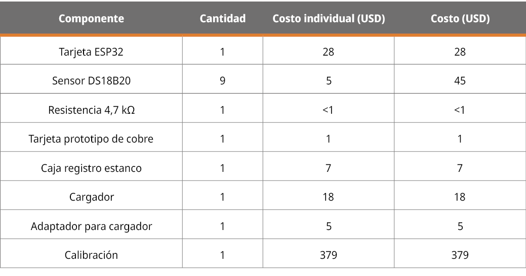 El costo de los materiales del calificador se muestra en la siguiente Tabla 2.