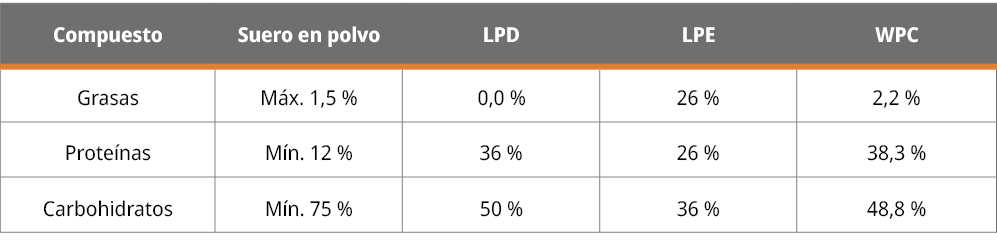 LPD: leche en polvo descremada; LPE: leche en polvo entera; WPC: whey protein concentrate.