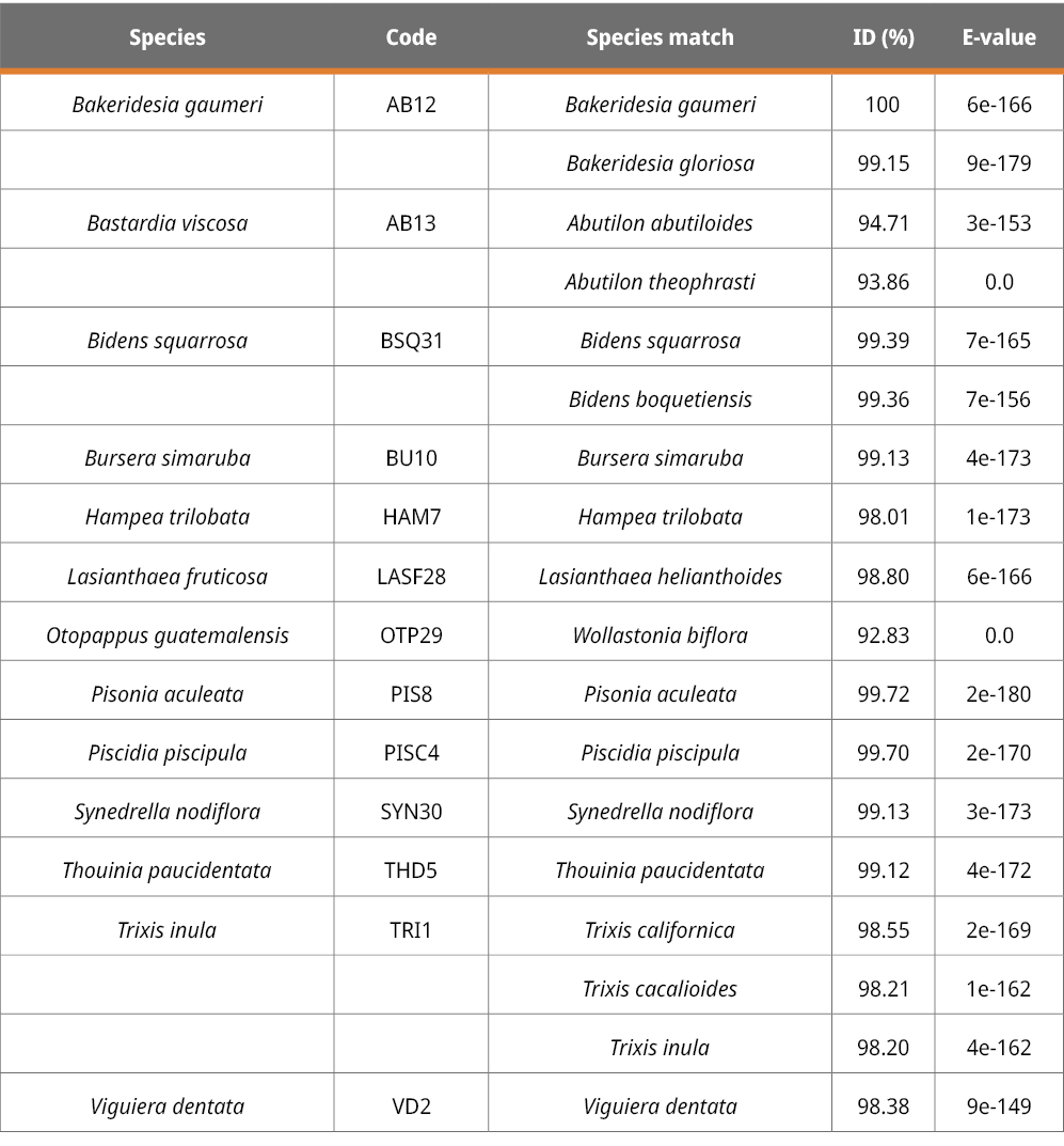 Table 3. BLAST results for the ITS2 region in plant samples collected in this study.