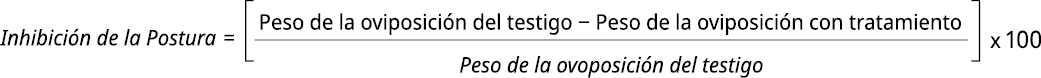 El efecto de los tratamientos sobre la inhibición de la oviposición se presenta a continuación: