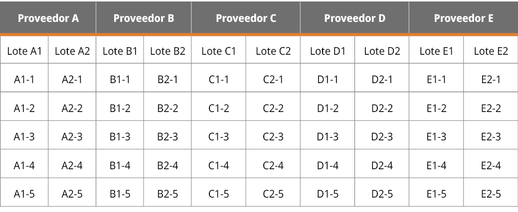 A partir de los datos generados en cada uno de los puntos descritos, se hizo su tratamiento de forma gráfica en Excel (Microsoft, 2007) y la evaluación estadística por ANOVA se realizó a través del complemento Real Statistics de forma de evaluar diferencias estadísticamente significativas entre lotes y proveedores.
