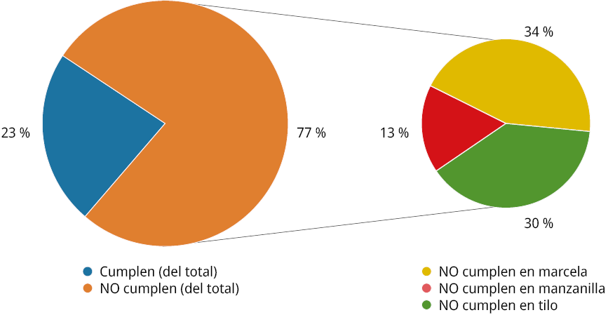 Si discriminamos el estudio según la hierba in natura y el proveedor, se observa que existe variabilidad en el cumplimiento de la normativa (Figura 2).