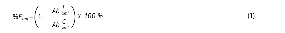 Siendo F la flotabilidad, ABTXMLla abundancia en la muestra de los xml superiores del tratamiento, y ABCXML la abundancia de los xml del control.