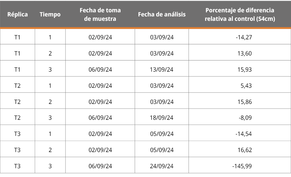 Además, se aplicó un análisis de medidas repetidas para el factor tiempo, dado que las mediciones en los distintos momentos provinieron de una misma unidad experimental. Este método permite considerar la dependencia entre observaciones y evaluar correctamente los cambios a lo largo del tiempo.