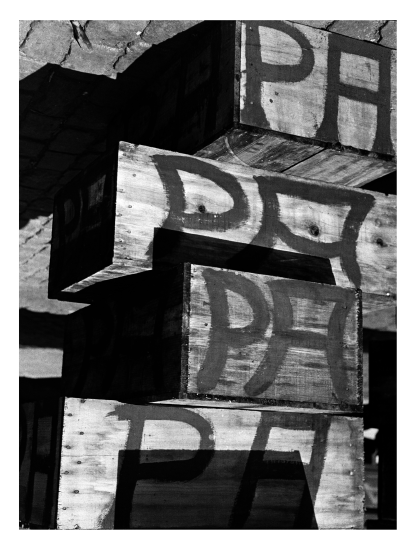 Another provocative group of fotoformas are those that appear to have been altered, but are, in reality, straight photographs. These photographs create visual puns and reiterate the importance of construction to the larger series. Sem título (Untitled), 1949 (Img. 6) creates cognitive dissonance because it appears altered—the “PA-PA-PA” on the boxes looks applied and the cast shadows reads as the product of multiple exposures—but in reality, the image is un-manipulated. Fernando Castro suggests in Aperture that Barros made photographs like these in an effort to generate “layers of confusion.”14 As Brazilian art critic Paulo Herkenhoff corroborates, even while parting from the real, the [fotoformas] operated in the camp of visual perception as abstract constructions and, on the other hand, while documents of the real, they are definitely compromised and find themselves in a state of ambivalence.15