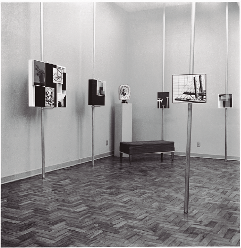 When Fotoforma was mounted—during the first two weeks of January 1951—about three years had passed since MASP’s opening and the debut of Lina’s non-traditional galleries. Barros’ photographs and exhibition design complemented Lina’s hanging system. The artist’s portrait, an unidentified statement—probably the text from the exhibit announcement penned by Pietro Maria Bardi—and a fotoforma from 1950 were sandwiched between two large glass sheets in one corner of the room. The rest of the space was occupied by photographs suspended at chest-height on support poles stationed throughout the space. A few poles held larger constellations of images arranged on black and white panels organized in “Mondrian-like” grids.25 These panels mixed fotoformas produced using a variety of photographic techniques, from straight photography to etched and overlaid compositions, suggesting that Barros wanted his works to be read as correlated and complimentary, not privileging one photographic modality over another. Exhibition photographs document at least two pedestals, each displaying an anthropomorphic fotoforma enlarged to about the size of a human head, adhered to a rigid support, and then cut out for a quasisculptural effect: a flat image with a distinctive face, sitting bust-like atop a rectangular support. A minimalist bench and modernist lounge chair completed the space.