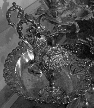Sin embargo, el agua no limita su uso al bautismo, sino que aparece en casitodas las ceremonias importantes, con la función de bendecir personas, espacios y cosas. Para ello aparecen el hisopo y la caldereta (Img. 10), usados por el sacerdote para rociar con agua bendita. Como puede verse, las sustancias no se comprendían solo como representaciones; agua y aceites eran en sí mismos contendores de gracia, purificación, fe e incluso salud. La importancia de la materialidad, coherente con la mentalidad contrarreformista, hace comprensible el cuidado que los representantes del clero tuvieron en preservarla en unas piezas dignas, elaboradas principalmente en plata.
