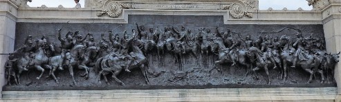 Nos comentários dos jornais, Ettore Ximenes havia sido elogiado pela sua qualidade técnica, por conhecer “perfeitamente as formas anatômicas” e ter figuras “plasmadas maravilhosamente”, com proporção correta.51 Um detalhe bastante elogiado pela Comissão Julgadora foi o alto relevo em referência ao quadro de Pedro Américo. Esta pintura já compunha o imaginário da independência, portanto, auxiliaria na função pedagógica do monumento de lembrar a todos que por ele passasse a importância daquele lugar e do evento que ocorrera ali em 1822. O relevo permitia cristalizar uma representação da cena da emancipação literalmente às margens do Ipiranga.