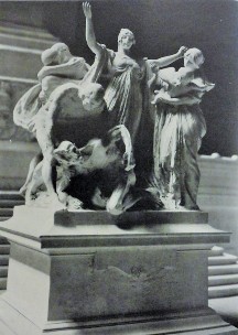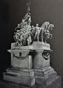 O estilo acadêmico e oficial da escultura em geral também foi posto em xeque, mas no campo da escultura pública foi diferente, com menor furor. É que na escultura voltada para os espaços públicos as convenções até então prevalecentes estavam tão firmemente consolidadas no gosto público de classe média e nos critérios dos comitês pró-monumento que uma renovação a partir de novas fontes figurativas tornava-se de recepção mais difícil.57