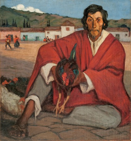 No obstante el temprano éxito, la obra del pintor pasaría por un nuevo cambio. En 1914 Bermúdez emprendió su primer viaje hacia el noroeste argentino, iniciativa que aparentemente tomó gracias al consejo de Zuloaga, quien consideraba que en el “interior” del país podría encontrar el tema de una gran obra nacional análoga a la que él había realizado en Segovia;19 si bien no se conoce con certeza su itinerario, sabemos que se asentó temporalmente en Jujuy y Catamarca.20 En julio de ese mismo año expuso los resultados del recorrido en una muestra realizada en las salas de la Comisión Nacional de Bellas Artes, que inauguraba un ciclo de regularidad anual donde se invitaría a artistas consagrados (además de Bermúdez, en esa ocasión participaron Cupertino del Campo, Pedro Delucchi, Gonzalo Legisamón Pondal, Walter de Navazio y Pedro Zonza Briano) y que funcionaría como una antesala del Salón Nacional.21 Nuevamente las voces de la crítica destacaron a Bermúdez: la crónica de La Nación afirmó que “Si en este país la tarea de hacer nacionalismo es la más apremiante y la más noble, este pintor merece ser colocado a la par de aquellos que con la palabra o con la pluma han descollado más en esta patriótica misión”,22 mientras que Julio Rinaldini (otro crítico de Nosotros) opinó que el pintor “(…) aspira a realizar un arte grande, que podría dar lugar más tarde a la formación de un arte nacional”.23 También sabemos que en esta oportunidad fueron adquiridas las obras Gallero viejo (que la Comisión destinó al MNBA) (Img. 2) y El batón rosa (comprada por el Concejo Deliberante Municipal). Ese año la consolidación del pintor se selló con su participación como jurado de la sección de pintura del Salón Nacional, al que envió el óleo Maruja, incluido por fuera del concurso.24