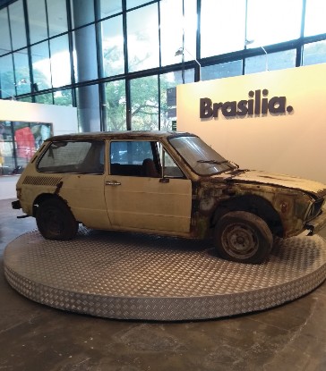 El trabajo se trataba de una instalación en la que se veía un automóvil que fue bastante popular en Brasil en la década de 1980 y cuyo nombre es el mismo de la capital del país, Brasilia. El automóvil se ve deteriorado, oxidado en varias partes, sin vidrio en las ventanas, con los neumáticos bajos, etc. La presencia del automóvil en el medio de la feria producía un impacto visual por el contraste entre el aspecto clean de los stands y la suciedad y precariedad del vehículo. Además, la manera en que el automóvil Brasilia fue exhibido, ironizaba las famosas ferias de automóviles al posicionar un objeto completamente deteriorado y dañado en una plataforma rodante y brillante, cuyo efecto visual es el de estimular el deseo sobre el objeto. La relación con el deterioro de la dimensión político-institucional brasileña (que está situada en Brasília) era bastante evidente.