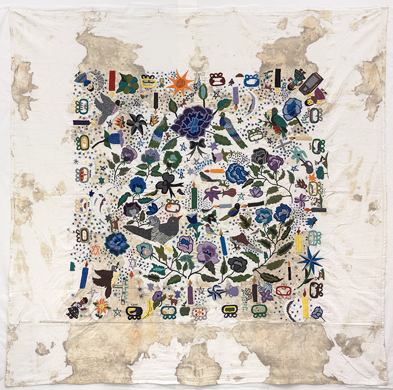 Embroidered fabricwith blood stains. 202 × 206 cm.National Gallery of Canada, Ottawa.