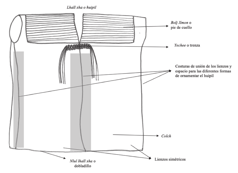 Cabe anotar que en uno de los estudios más extensos y emblemáticos entorno a los huipiles, “La indumentaria tradicional de Yalálag, identidad y cosmovisión de los be’ne urash” de la investigadora yalalteca Norma Patricia Lache, 10 las mujeres tejedoras no cumplen un papel protagonista en la construcción de los relatos en torno a estos saberes. Por el contrario, Lache toma como fuente primordial relatos de miembros varones de la comunidad, por lo que los saberes presentados en su estudio se focalizan más en los aspectos formales y simbólicos de la prenda, o en las leyendas entorno a ella. Si bien tales relatos aportan a la construcción del relato simbólico que atraviesa lo comunitario y que da sentido al uso del huipil, el método de Lache tiene como consecuencia que la discusión en torno a la prenda excluye las voces de sus productoras y portadoras principales, negándose a reconocerle a las tejedoras un valor de interlocución en torno a este hacer.