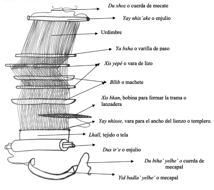 La investigación en la que se basa el presente ensayo, al igual que el trabajo de Lache, se planteó desde el zapoteco de Yalálag y se llevó a cabo principalmente a través de conversaciones con mujeres ancianas de la comunidad que tejen y usan estas prendas. 11 Por mi parte, el trabajo con y desde el zapoteco me permitió llevar a acabo una recuperación y una re/estructuración de mi historia personal situada en este contexto. Tuhiwai explica este gesto a partir de las nociones de “re-escribir” (to re-write) y “rectificar” (to re-right) nuestra posición en la historia. 12 Esto se empata con la propuesta metodológica de Silvia Rivera Cusicanqui, quien propone accionar determinados “gestos descolonizadores”, como la reactivación de las lenguas indígenas, como una manera de subvertir la forma en que se ha producido conocimiento. Según Rivera Cusicanqui:
