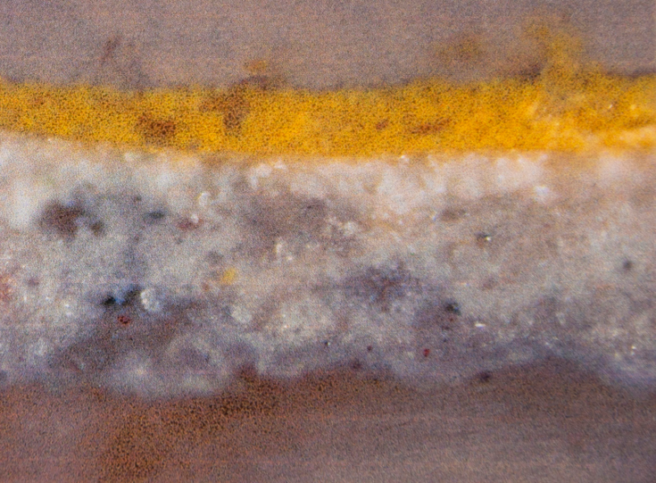 Una vez aparejado el soporte se procedía a aplicar el color, para lo que era necesario haber molido finamente los pigmentos en una moleta o “piedra de moler”. Baltasar de Figueroa, siguiendo las recomendaciones al respecto, tenía hasta cuatro de estas piedras, una para cada color. 16