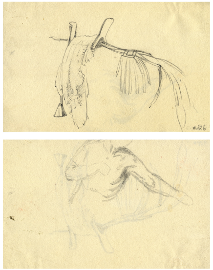American Philosophical Society, Philadelphia.Another small sheet captures a horse saddle, without a horse, and also includes an additional image on the back of the paper, of a masculine torso engaged in some sort of animated gesture (Img. 15). These anatomical observations are also present in another very small scrap piece of paper, cut very narrow and very clumsily, in the back of which Peale recorded some sort of indigenous weapon or tool (Img. 16). The last sketch is likewise extremely small and fragmented, and it depicts a stirrup (Img. 17), very similar to one currently found currently in the collections of the Museo Nacional de Colombia (Img. 18). These drawings as a whole do not comprise any sort of visual program or intention, indeed, most seem random and improvised, and even cut from another drawing, possibly a sketchbook or a larger sheet of paper. They give the impression of being part of a broader, scattered visual dictionary that may have been used later as an aide memoire. Thematically, at least, they have nothing in common except for their author and their geography.