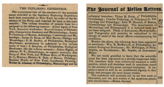 [i]n 1831, according to Dr. A. C. Peale, 25 Titian accompanied an expedition to the Magdalena River in Columbia, which was financed through the liberality of Dr. Marmaduke Burrough [... ]. The collections obtained were presented to the Philadelphia Museum, though later Dr. Burrough presentedmany specimens to the Philadelphia Academy.” 26