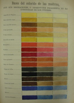 La siguiente ilustración (Img. 1), que proviene del ensayo sobre jilolojíadel Rector de la Escuela de Ciencias Naturales y profesor de Botánica Francisco Bayón, evidencia los alcances de la pintura para la descripción y clasificación, en este caso, de los diferentes tipos de maderas colombianas.