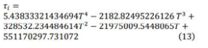 Al relacionar la temperatura con los parámetros obtenidos para cada controlador mediante una ecuación de regresión se obtienen los parámetros del controlador en función de la temperatura (12) y (13).