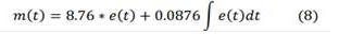 (7)Con estos parámetros la ecuación del controlador PI está dada por (8):