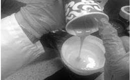 Para realizar el modelo de capas fueron seleccionadas la silicona de platino y silicona de grado médico por las características mencionadas idóneas para su utilización en un simulador que será continuamente perforado. Para cada una de las capas a simular se utilizan diferentes grosores y pigmentos. Para la capa que simulará la piel se realizó una mezcla de silicona de platino pigmentada con color de piel oliva, como se muestra en la Fig. 1, el tejido adiposo se pigmentó con color de grasa y el músculo color rojo sangre.