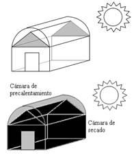 De acuerdo a lo antes planteado, se construyó un sistema de deshidratación solar con un diseño que permite generar altos niveles de temperatura empleando una marquesina con doble cámara de secado (ver figura 1), en la cual se tiene una de precalentamiento y otra de deshidratado.