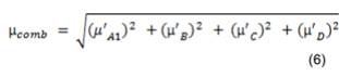 (6)Donde µA1 es la incertidumbre estándar relativa, µB es la incubación de la prueba presuntiva, µC es la incubación de la prueba confirmativa y µD es el volumen de la muestra.