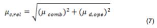 La incertidumbre combinada operacional de los resultados experimentales está dada por la ecuación 7.