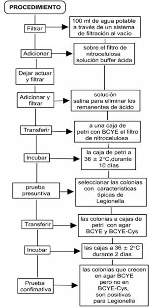 La metodología utilizada se encuentra consignada en la norma ISO 11731-2:2004 [13]. La Fig 1. muestra el procedimiento general para la verificación del método de Filtración por Membrana.