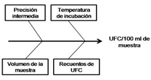 La incertidumbre del método se realizó de acuerdo con el modelo global detallado en la norma ISO 29201:2012 [15]. Se establecieron los factores de incertidumbre que aportan más al resultado final del método como se observa en la Fig.2.