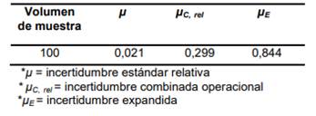 (7)Donde, µcomb es la incertidumbre relativa combinada bajo condiciones de reproducibilidad intermedia.