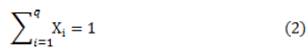 Se debe tener en cuenta que la variable q representa al número de ingredientes de un sistema y la proporción de cada componente i en la mezcla por Xi, entonces se tiene: