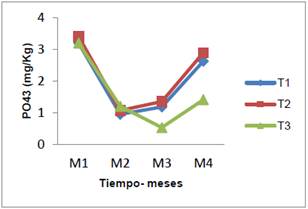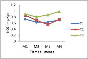 El nitrógeno es un elemento esencial para la reproducción celular debido a la naturaleza proteica del protoplasma; se ha demostrado que la calidad de un proceso biodegradativo está directamente relacionada con su contenido de N. El fósforo desempeña un papel fundamental en la formación de compuestos celulares ricos en energía, siendo necesario para el metabolismo microbiano (28). Durante el proceso de biodegradación se observaron mayores concentraciones de N (NO3-) y P (PO43-) en las etapas inicial (<30 días) y final (>90 días del proceso) (Figura 2) (Figura 3). Se comprueba entonces que, en general, entre el inicio y el final de la incubación se produce un aumento de las concentraciones de los distintos nutrientes, debido a la pérdida de materia orgánica de la masa a degradar (29)(30).